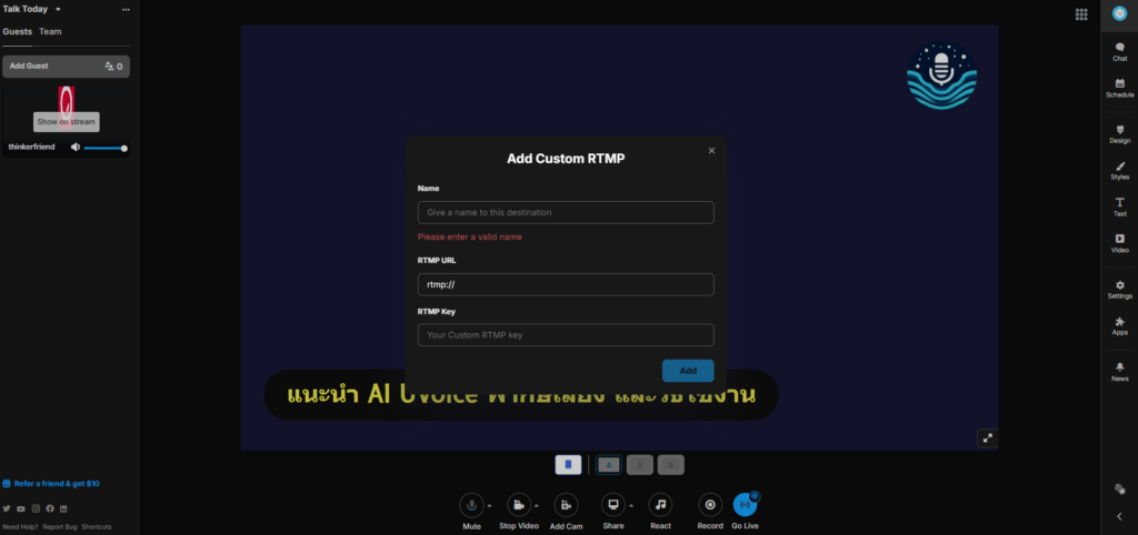 How to Get วิธีเชื่อมต่อ Talk Studio สู่ TikTok ด้วยระบบ RTMP