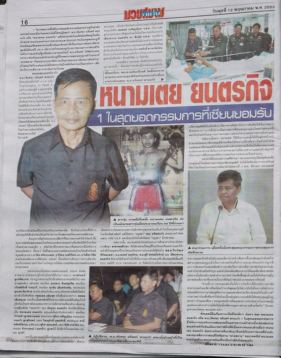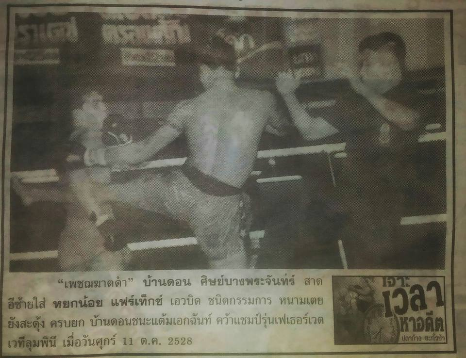 ถ้วยรางวัลที่หนามเตยถือคือรางวัลไฟท์เอาชนะ จักรกฤษณ์ ลูกละโว้ ในไฟท์คู่เอก ไฟท์นี้โดนเจ้าถิ่นที่สุพรรณ เดินมาข่มขู่ระหว่างพักยก ตรงมุม ทำเอามีดปลายแหลมกรีดผ้าใบขู่ แล้วพูดใส่หนามเตยว่า ถ้ามึงชนะมึงกลับบ้านไม่ได้แน่ แต่หนามเตยไม่กลัวเจอแบบนี้วิ่งเข้าไปก้านคอ โชว์ทั้งหมัดเข่าจนเอาชนะคะแนนได้แชมป์คู่เอกในคืนนั้น !!