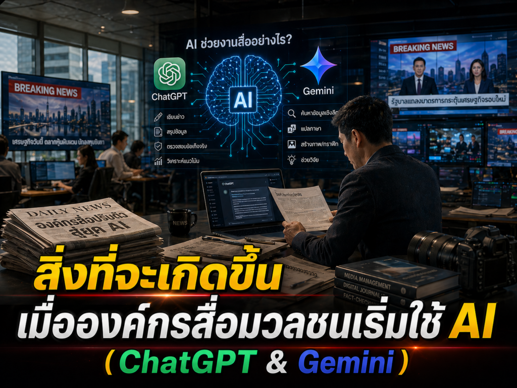 ในยุคที่ข้อมูลเคลื่อนไหวเร็วกว่าเดิม องค์กรสื่อมวลชนกำลังเผชิญ “จุดเปลี่ยนสำคัญ” จากการนำ AI อย่าง ChatGPT และ Gemini เข้ามาใช้ ไม่ใช่แค่เครื่องมือช่วยทำงาน แต่คือ “ตัวเร่งการเปลี่ยนแปลงองค์กรทั้งระบบ” ตั้งแต่กระบวนการผลิตข่าว ไปจนถึงวัฒนธรรมการทำงาน 1. งานเร็วขึ้น แต่ยังต้องแม่นยำ AI ช่วยลดเวลาการทำงานซ้ำซ้อน เช่น การค้นคว้าข้อมูล สรุปข่าว เขียนสคริปต์ หรือจัดโครงสร้างคอนเทนต์➡️ ผลลัพธ์: องค์กรผลิตข่าวได้เร็วขึ้นทันสถานการณ์➡️ ความท้าทาย: ต้องมีระบบตรวจสอบ (Verify)